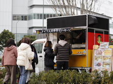 見た目も楽しく、おいしいメニューを提供するキッチンカーが毎回集結。飲食スペースもあるので、ランチやティータイムをすごせます。