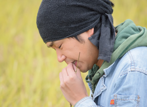 手をかけられる作業は丁寧に。稲の頑張りを見守ることしかできないときには、あぜの草刈りをしながら頑張れーって応援しています。稲は、刈られることをわかっているかのように、根ではなく穂に栄養を蓄え子孫を残そうとします。その結果が美味しいお米になるんですが、1年頑張って美味しくなったお米を丁寧に届けたいですね。あ、でも稲ってとっても正直で繊細なんです。繊細さ故に水、肥料の加減であまりにワガママなときは「あぁ、すっごい面倒くさい彼女だな」みたいに思うこともありますよ。笑