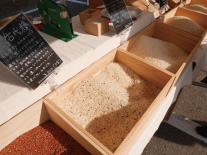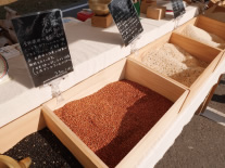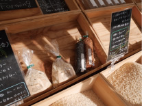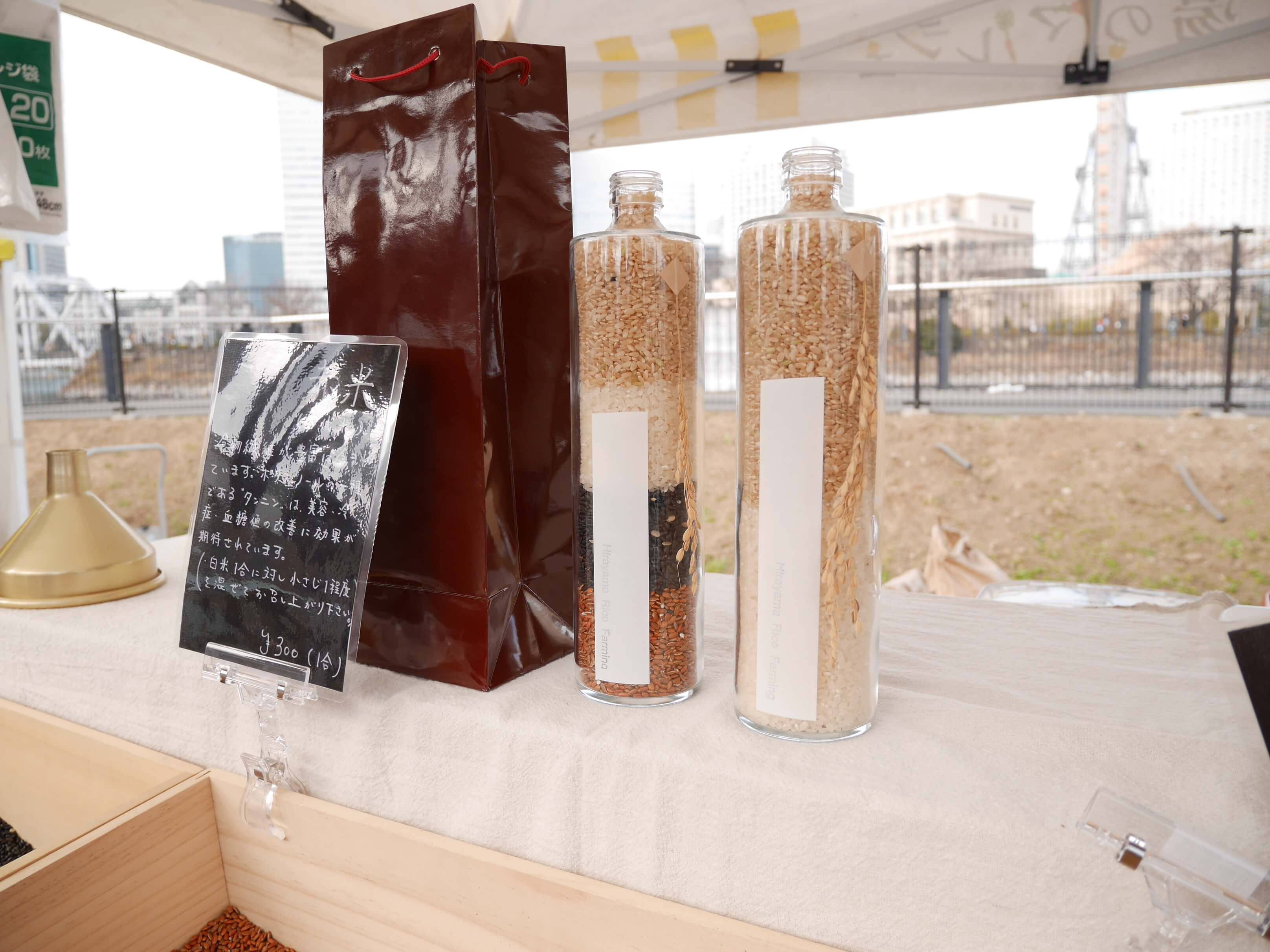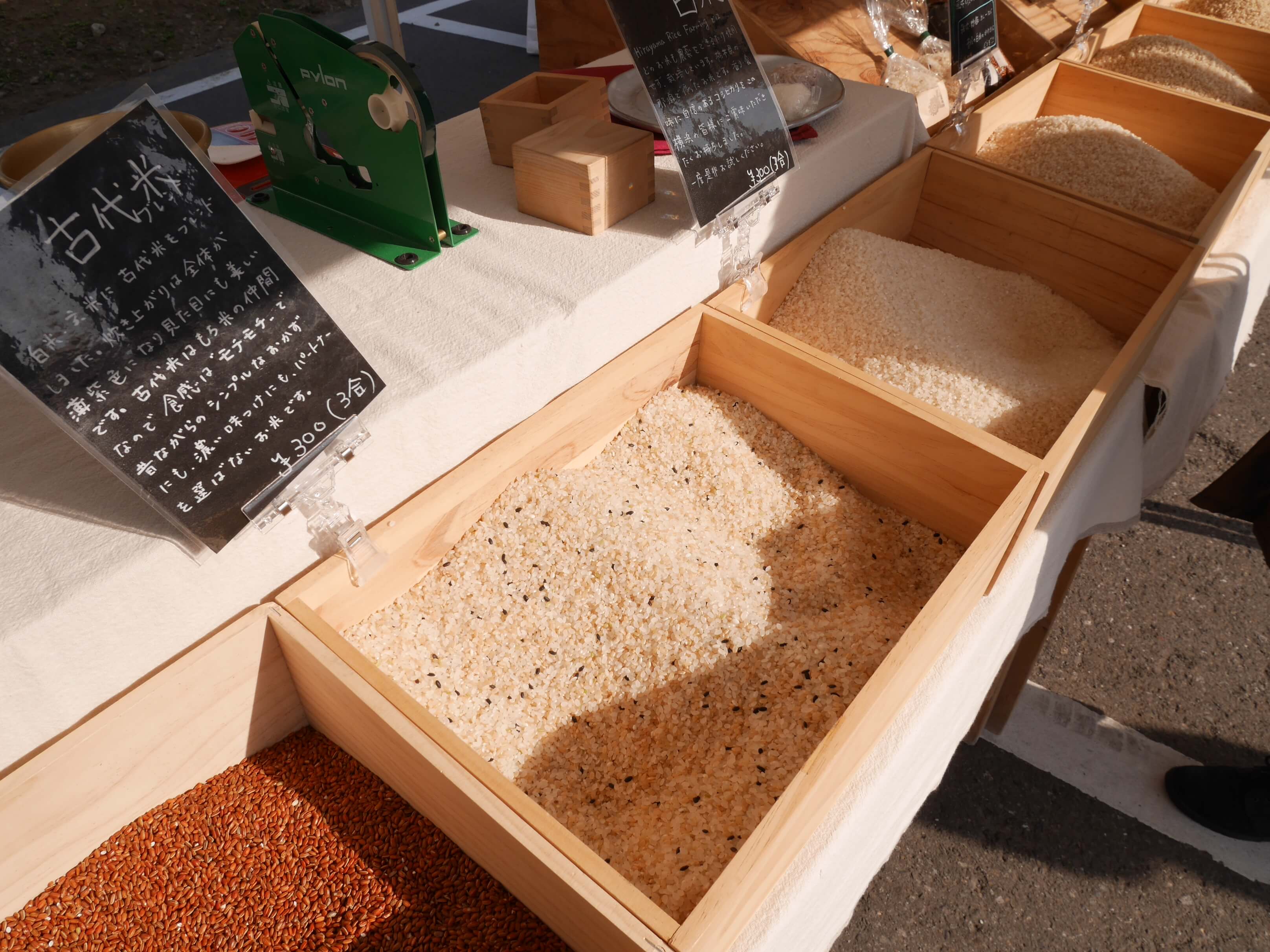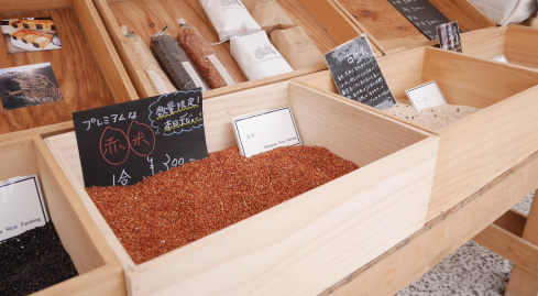 お客様の”今日の献立”に合わせて主食を提案したいと思ったからです。玄米→3分づき→5分づき→7分づき→白米。それぞれ少しずつ違う味と香りを知って欲しいので、選択肢をたくさん用意しています。僕自身、マルシェで出会った食材に食の概念を何度も覆されました。そんなマルシェの仲間達に触発されて、僕も「お米の概念を変えていきたい」と試行錯誤しています。ブレンド米にも入っている古代米の「黒米」は僕の代から始めました。あたり前の白いご飯に、色と食感のアクセントがあったら料理をするのも楽しくなるかなって考えて。今年から「赤米」という古代米もデビューしましたので、ぜひ。