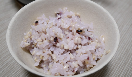 Hirayama Rice Farmingの全て(玄米・白米・古代米)が入っています!毎回マルシェの前に炊いて、食べて、その時のお米にあわせた割合に変えています。