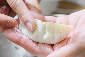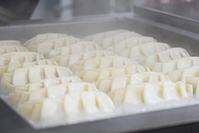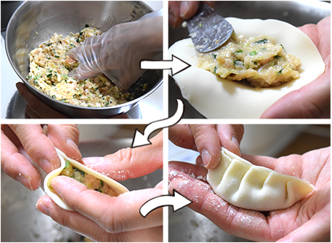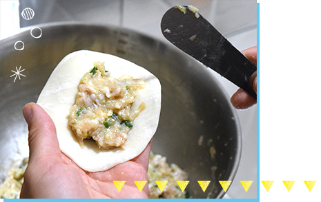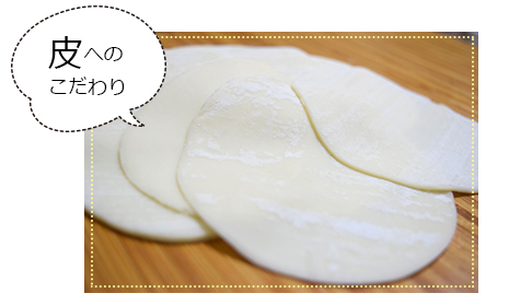 餃子を、すぐ飲み込んでしまうように食べるのではなく食事として食べて欲しい想いと、餃子を食べたいときに餃子だけで満足してもらいたい想いをイメージしながら皮や具を決めていきました。